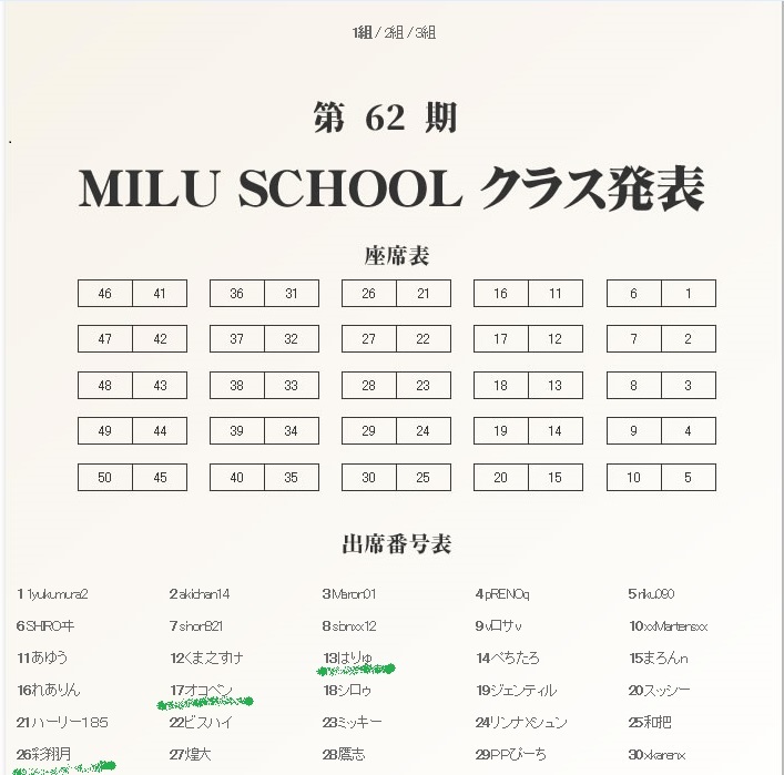 1組のみなさま、卒業までの、半年間宜しくお願いします<(_ _)>