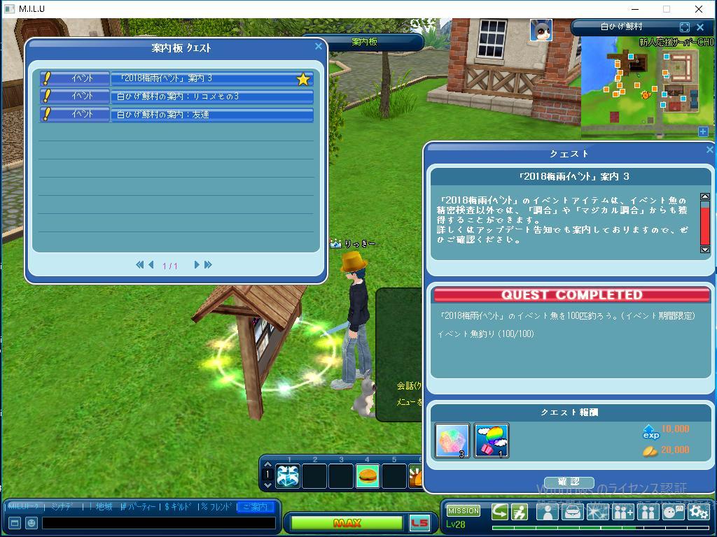 今日は「2018梅雨イベント」案内3の 100匹釣りを達成しました。