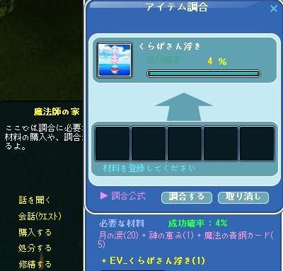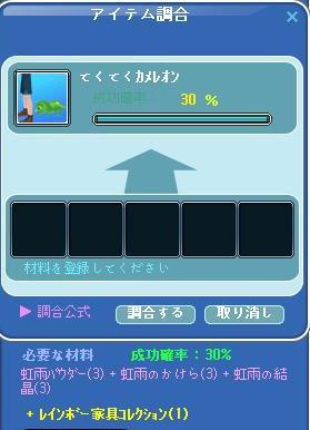 昨夜は、コレブの完成式やら調合を( ̄ω ̄)ニヤ...動画は緑でちゃって使いモンにならず・・w1週目の家具コレブが、@2点で埋まるって気付いて…売買掲示板の投稿したら~フレチャ頂き、お肉の分も完成できました♪アリ(´・ω・)(´_ _)ガト♪ 3回目に調合成功!お友達から飴を頂いてもチッパイしてた代物なんです~ヾ(〃^∇^)ノわぁい♪ レイニーダンスな飴も、ドリンクに♪早寝するお肉が持ってたくらげクリスタルが4個!!!アタイ残り1個レイニーダンスⅠが2個とⅢが1個~ドリンクできたo┓⌒┗o⌒o┓ヒャッホーゥ♪これで、アイテム枠1個空く(*´ω`*)浮きも作っちゃったよ…難産だったけど…w 光り物には弱いww雨降る羽も二人分作ったった~(*´σー`)エヘヘ ま、修繕可になるし…とw父ちゃんにも、雨乞い踊りを!~メガネの修繕可を作った(+・`ω・´)キリッEVのスピナーミルウエイ作れる余力は、残ってなかった(・`ω・)ゞデシッ!!wBridal Eventみたいですね~!もう結婚してるし、興味は・・・ない・・な┃電柱┃。´・ω・。)ゞエヘ