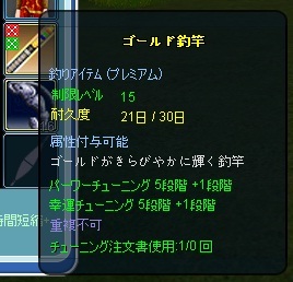 竿はこの間フルチューンが完成したゴールド竿を使いました。