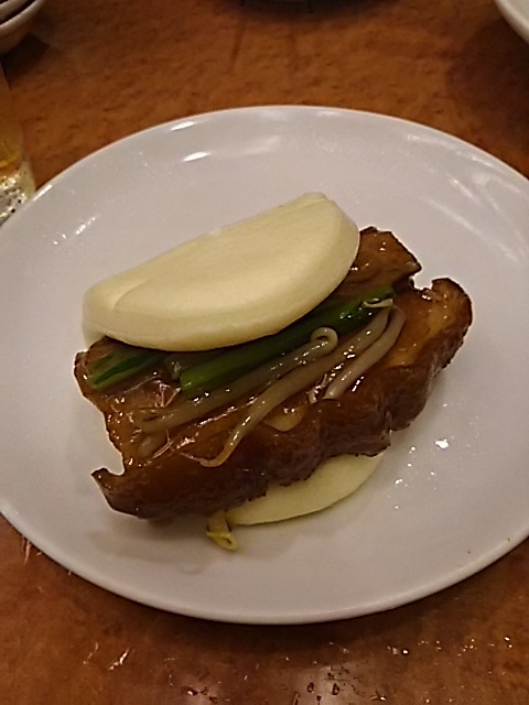 エビチリと手前がアワビとふかひれのスープ・パオズに挟んだ豚の角煮などが出たw