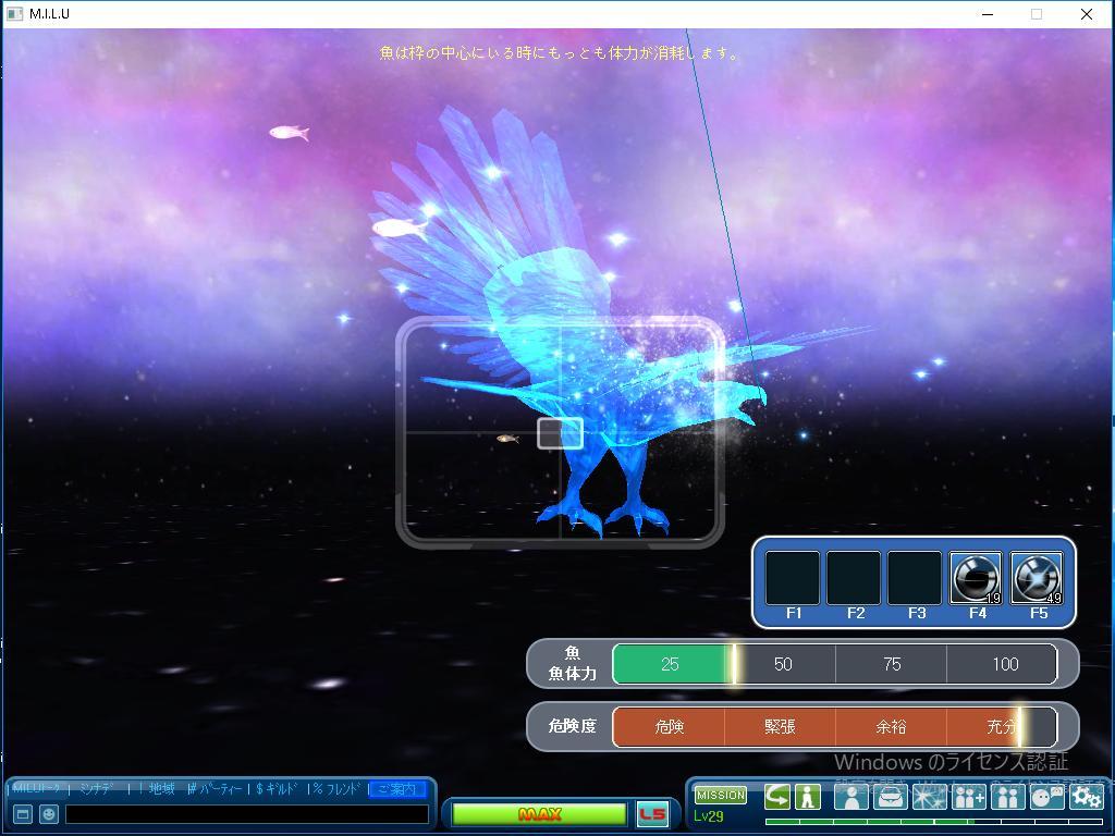 これは、ホワイトスターバイトⅡを使って、 「10周年イベント」のイベント魚の 30匹を目指して、釣ろうとしている時の 画像です。 釣ろうとしているのは、魚ではなくて、 なぜか、わし座というのが面白いです。 このわし座の画像はいつもの画像 とは違って、なんだかとても カッコよくて、美しい感じがしたので、 撮影しました。 今日の金運は5万ゴールド交換券を ひとつ手に入れたことだけです。 今日はとても楽しく釣りが出来たことが 良かったです。 明日のイベントはどんな展開になるか とても期待しています。 では、またです。