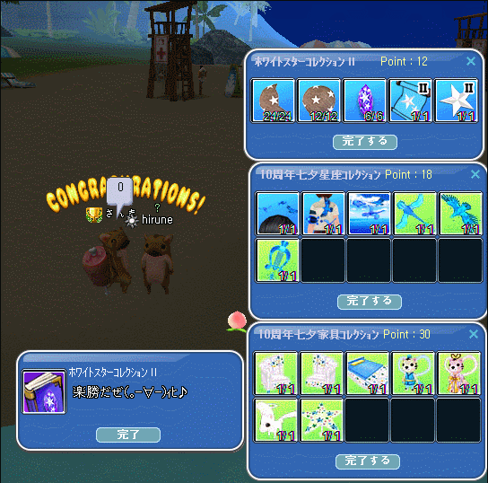 時限クエも、最後の200釣れ☆完了v(。`・∀・。)vィェィ♪これができるイヤリングをペアで頂いた~Σd(ゝ∀・)アリガトォ♪ 2個、修繕可に♪君に決めた このエモで♪ETごっこができるんだぜ!って、極へんてい様に教わった(*´ω`*)露店で、変なもん見つけては仕入れられているご様子wwwウリムリ・・・・・・新たな進化が楽しみな、極へんてい様なのです!コレブ3種類完成できました~ヾ(〃^∇^)ノわぁい♪本日のメンテは、月初めなので10時~メンテ明けに(*´ω`)o【マタネ♪】o