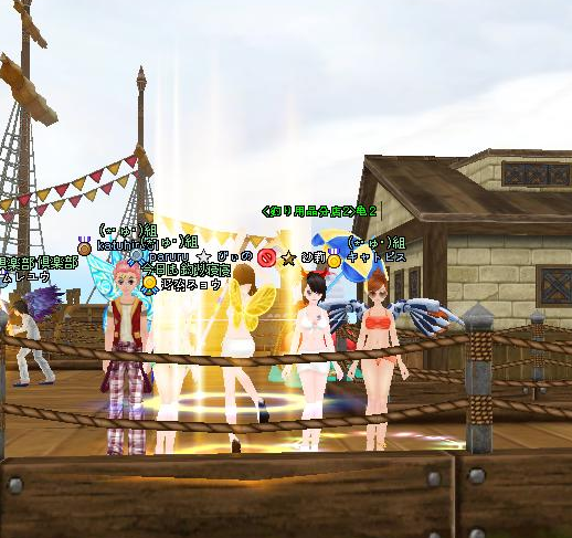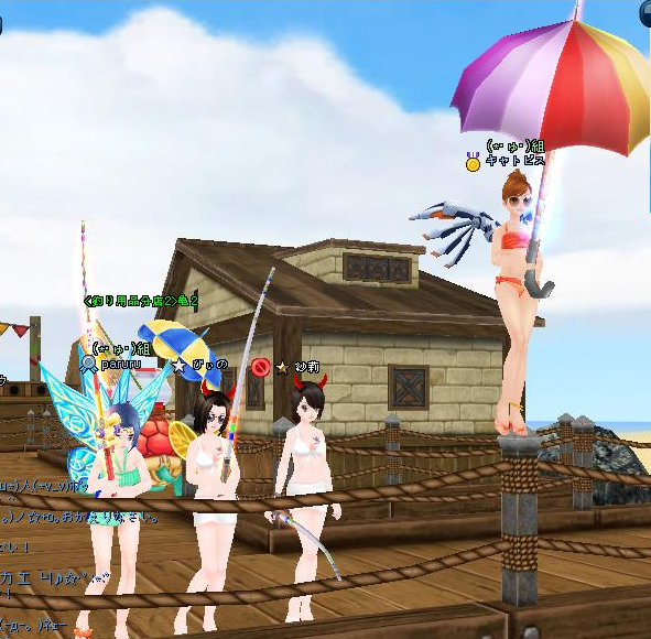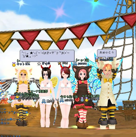 ラストはステキな傘をお持ちでレースクイーンのようなキャトさんとみんなで水着釣り♪