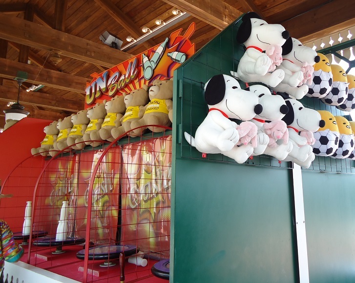 お祭りの縁日にるような、ボールなげてピン倒したら ぬいぐるみもらえるやつで