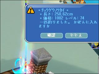 赤PPで、リュウグウノツカイを釣り上げました(´∀`*)ウフフLevelはなんと、「74」でした@@道理であんなに引きが強かったんですなw速攻でサマーバブルを使って、釣りましたww幻の「ハリセンボン」も、1匹ゲット^^