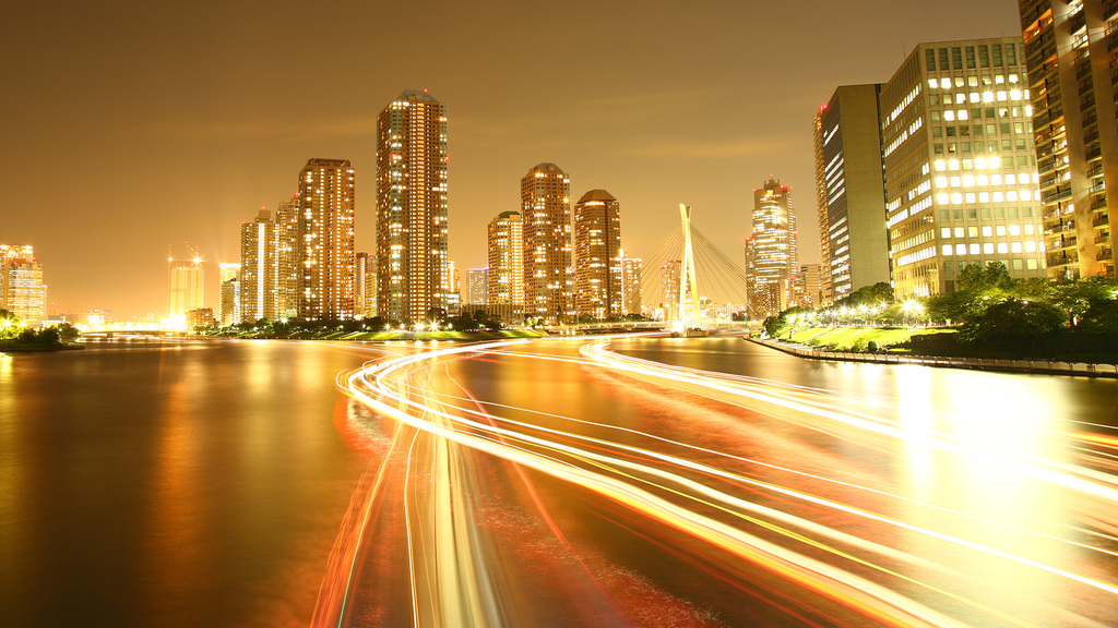 この光の線は隅田川を通る屋形船の明かりなのですが、この時期は利用客が多いようで冬場に比べると待ち時間が少なくて済みます。