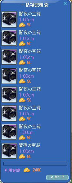 材料が少したまったので、輝く漆黒の鍵で闇夜の宝箱を開けてみました^^