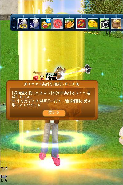 図鑑埋めのつもりでマボを狙ったつもりが、深海まで出てきてまさかのLvuP…竿替えるの忘れた(;^_^A仕方なく、SSでくるりん撮ってみましたが、クエ達成の表示が…_| ̄|○
