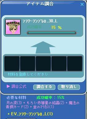 最近15%調合意欲が・・・調合運なさ過ぎで・・・やってないーーー(ノ△;。) |