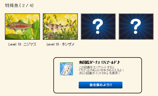 魚図鑑の特殊魚2匹が未だに完成していませんw