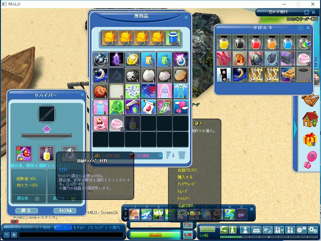 本日タコ釣りをしていて、魔力の結晶が手に入ったのでリハイパーをしてみました^^