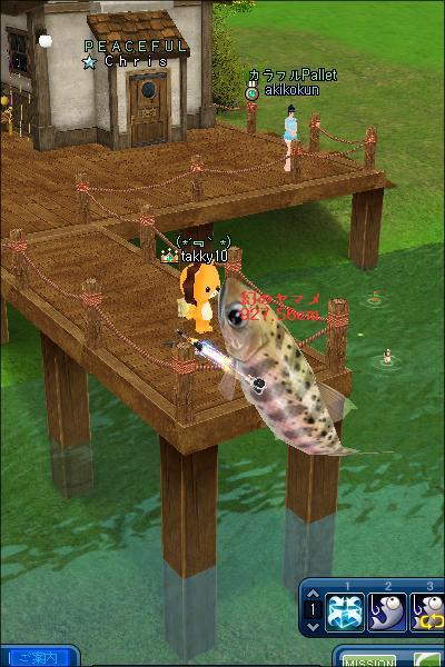 桟橋付近に赤PP出ました!釣れたものを精密にかけるとたまにレアアイテムが出るという情報をゲットw