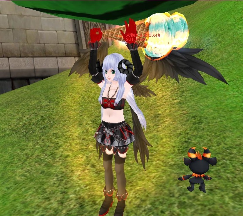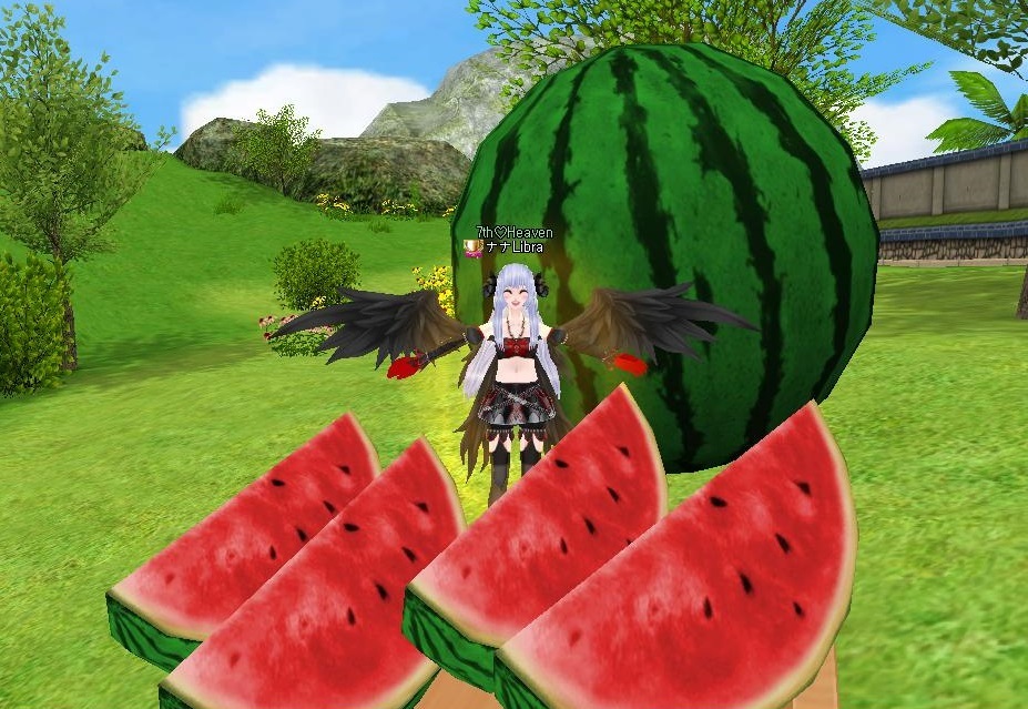 次は、丘に大きなスイカがあったよぉ♪(ノ)’∀`(ヾ)