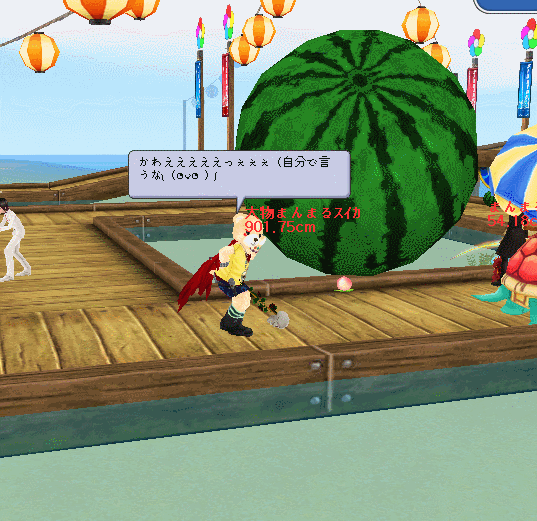 でっかいスイカをいとも簡単にふりまわすなんて、力持ちだああああww