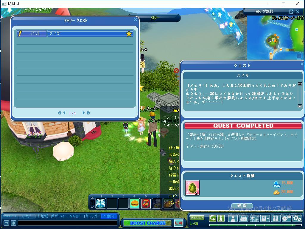 今日は最初に魔法の種を使って、 サマーメモリーイベントのイベント魚を 30匹釣りました。