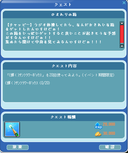 箱開けよう系だからクエストもらうまで開けないように(´・ω・`)