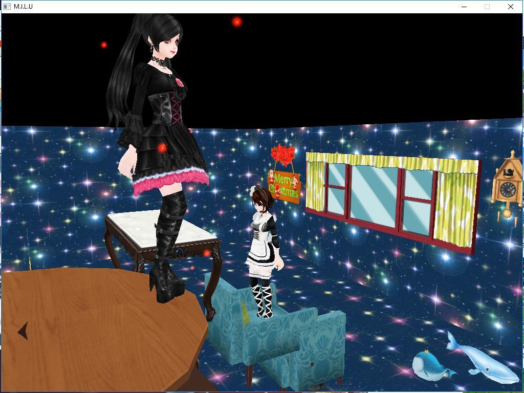 奇妙な部屋に二名の住人らしき人物が、ケーキの上に横たわっています。・・・!