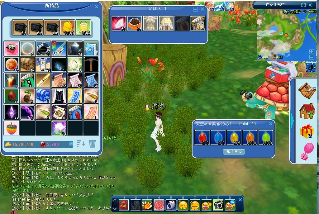 今日も天空にて果実摘みをしていましたら、翠川さんが足りない果実をおぎなって、プレゼントしてくれまし