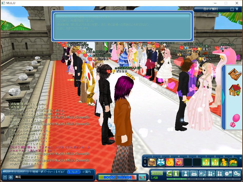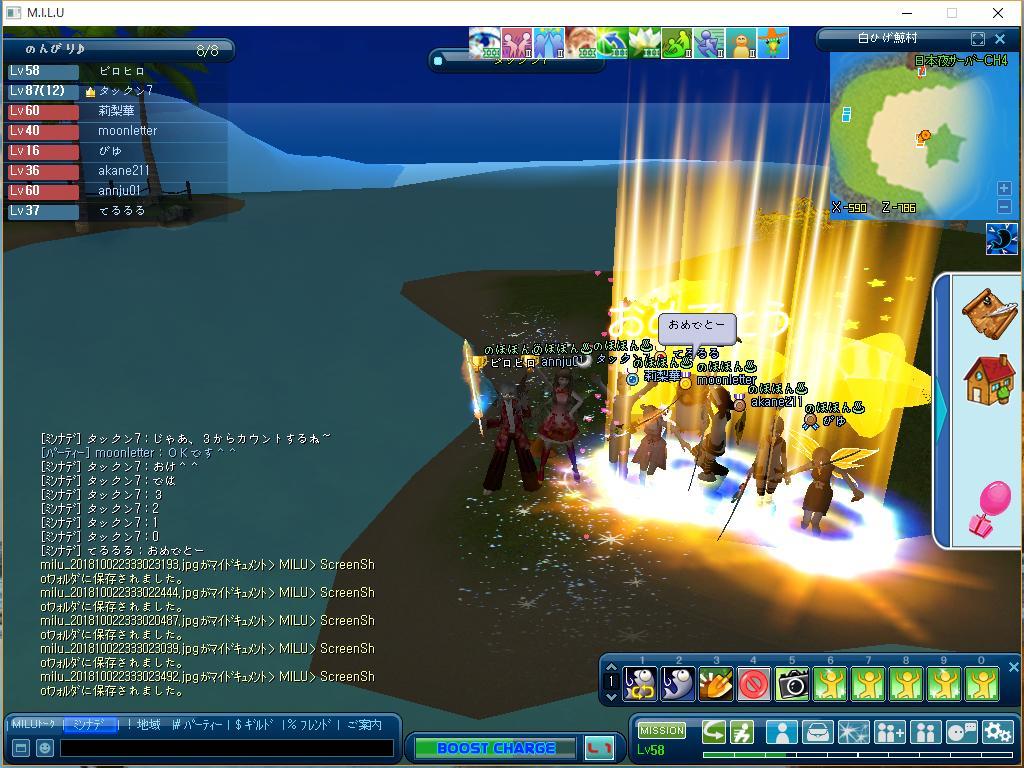 で、中で釣り中にギルメンから4人(リリカちゃん、ムーンちゃん、ぴゆちゃん、あかねちゃん)が同時UPするので帰って来いと言われたので、帰ってUP式に参加したよ^^皆おめでしたw