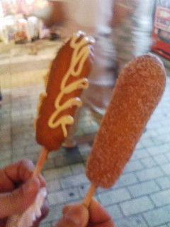 なんと、お砂糖がまぶされてるアメリカンドック(写真手前)ですw