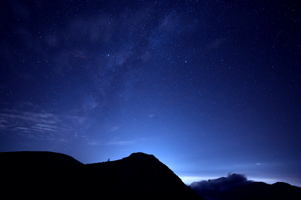 三枚目山の後ろからぐわーっと光ってるグラデーションと満天の星!!!