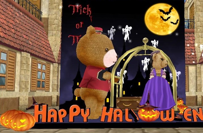 かぼちゃの目の窓から顔をのぞかせてるくまちゃんがかわいすぎる~~~~~~~wwwww