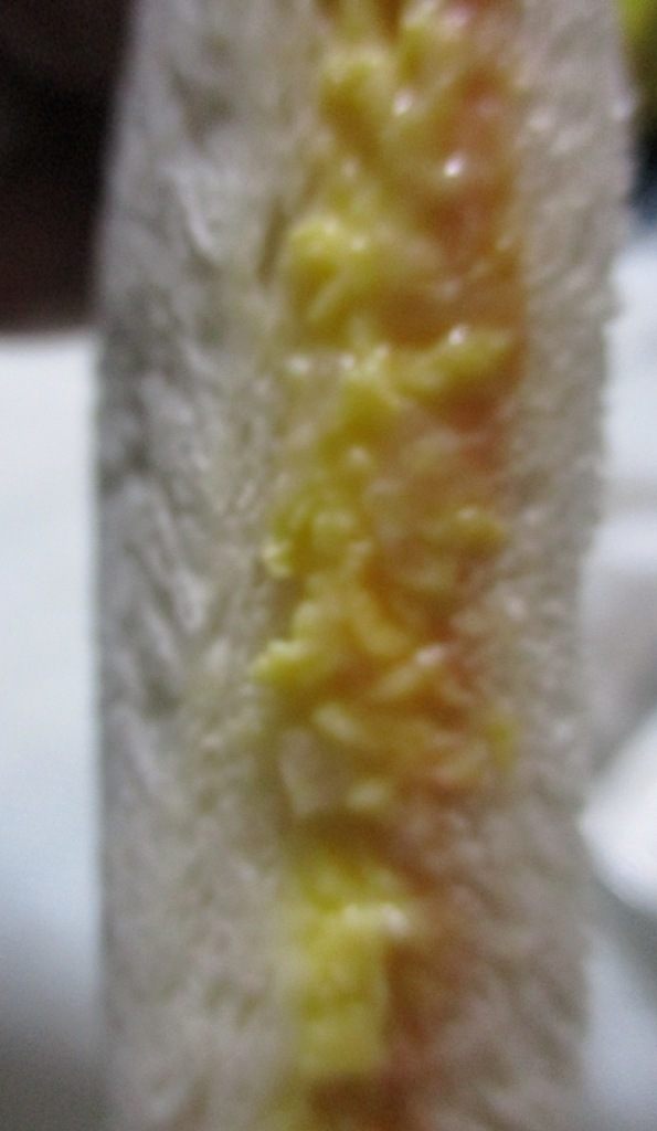 次に、ゆで卵のスライスのサンド。コンビニのゆで卵って絶妙な茹で加減の半熟の黄身がおいしいですよね。