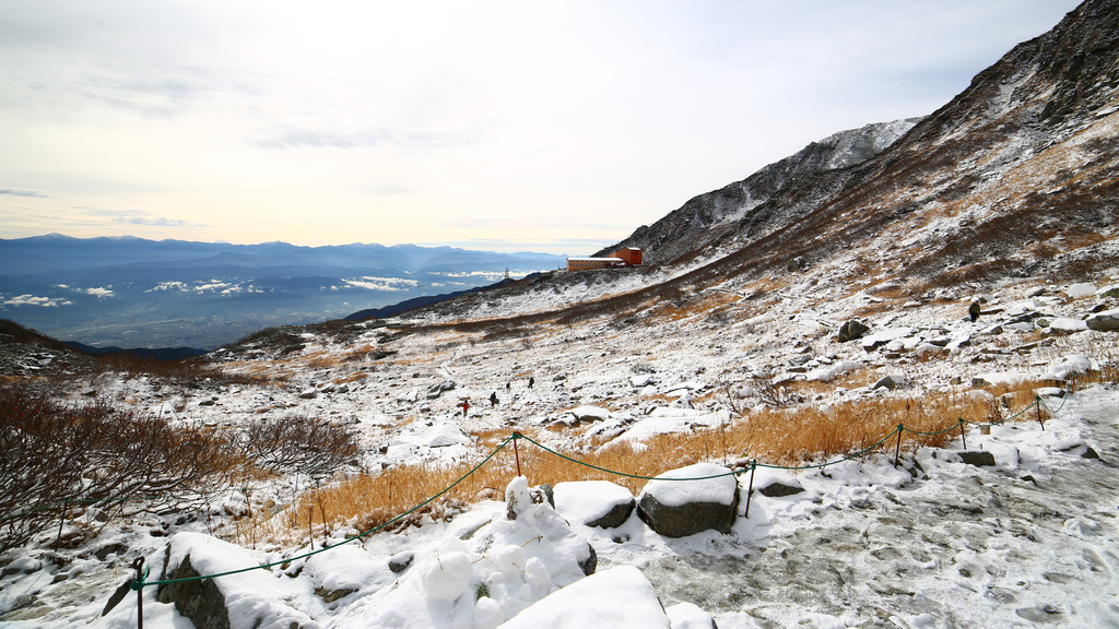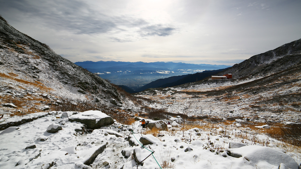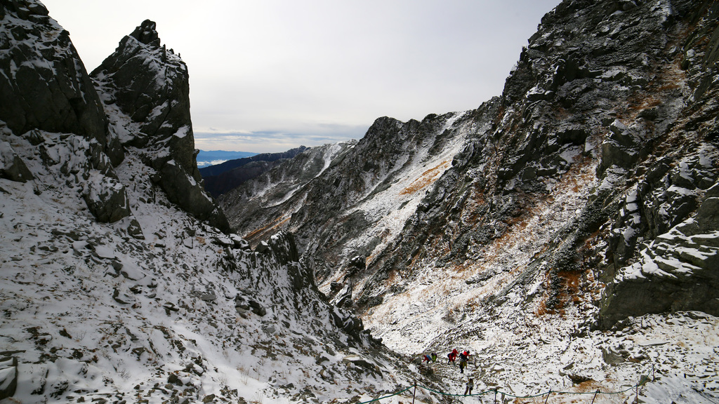 それはそうと、黒い岩肌が軽く積もった雪とのコントラストで美しい~~~