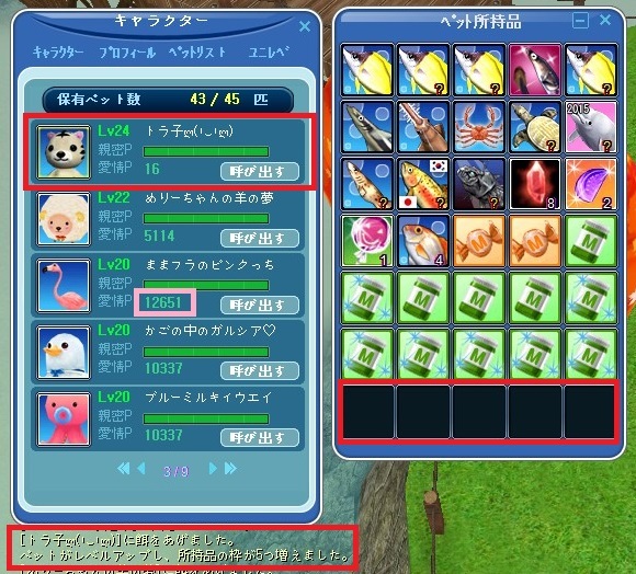 ペットの成長で 所持品枠が増えるのはうれしいね 育てがいがあります