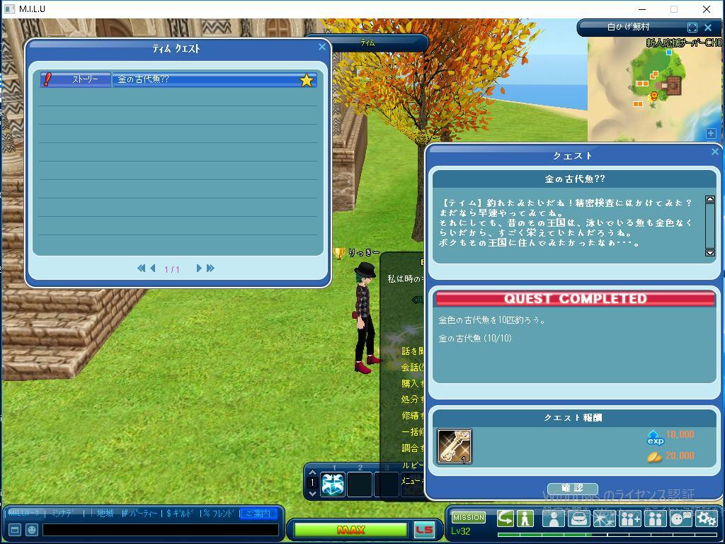 今日は、運よく、ミル友さんから頂いた、時のエサで、 ティムクエストのストーリーの金の古代魚クエストを 1年ぶりに完了できました。
