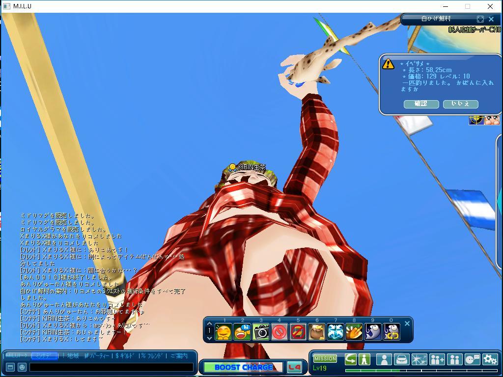後ろで優雅に釣られている、恐らく師匠のミルトモのあんりさんを背に、師匠とイベ釣りに興じておりました。