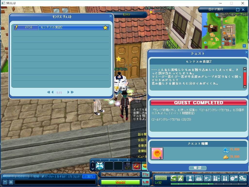 最初はモンテスクエストのモンテスの食欲2で、 このクエストでは、グレープカプセルを20個を 手に入れることを目指しました。 このクエストは達成しました。