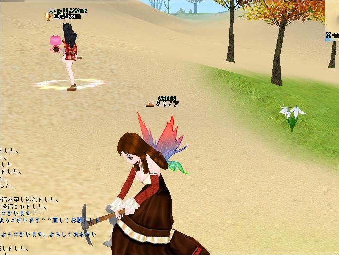 砂漠にて採掘中です。途中で、シーフの男性服が出てきたので、