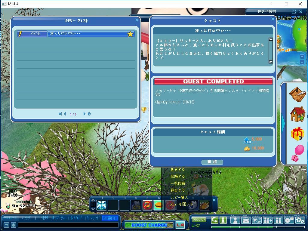 明日のクエストの展開が楽しみですね。 では、またです。