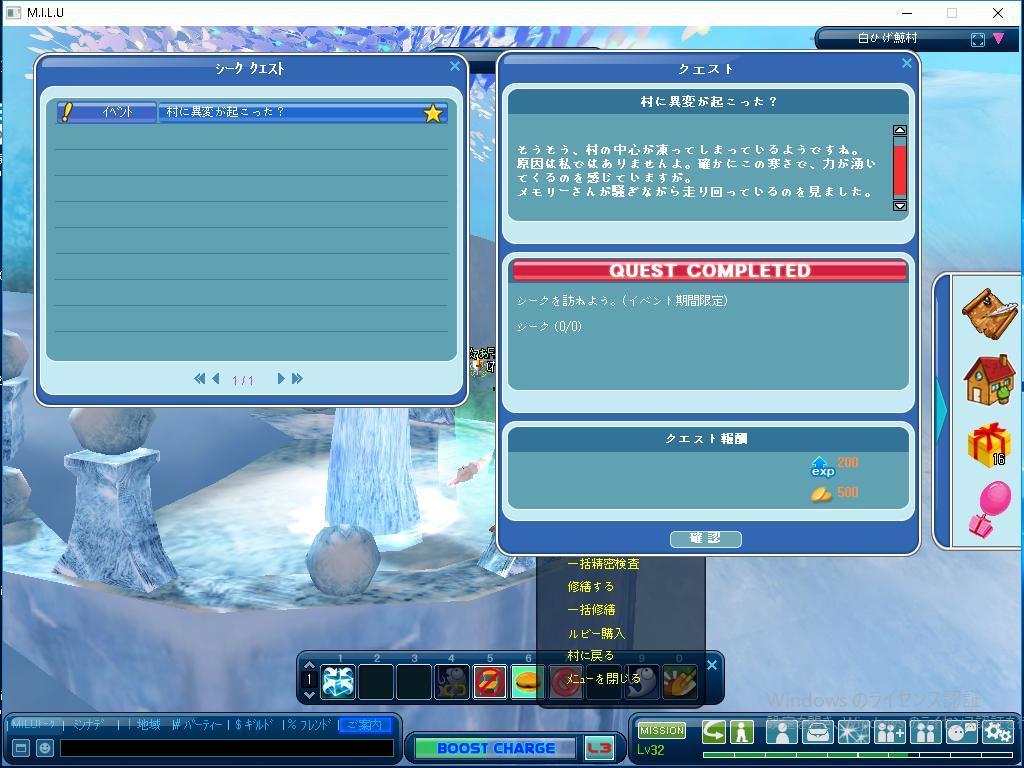 アイスビレッジの中のシークでクエを受け取らなければならない