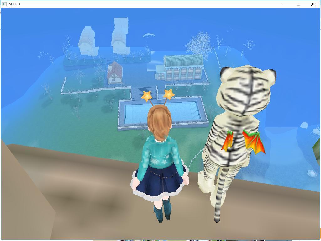 ひゅんひゅんします。 下に学校が見えます。