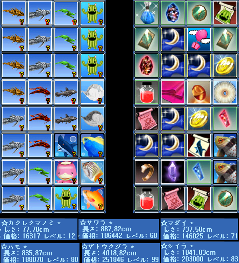 (「`・ω・)「がぉー ビスと純パと結晶とカードGet!! 魅惑月多くない・・・? 調合書もちらほら・・・ ま、まぁ材料が凄く当たりだから良いよね! ランダム魚は20万超えが2匹! カクレクマノミ?見えませんね・・・ 先日のクイズの答えは 次の材料クイズの翌日にでも書きます