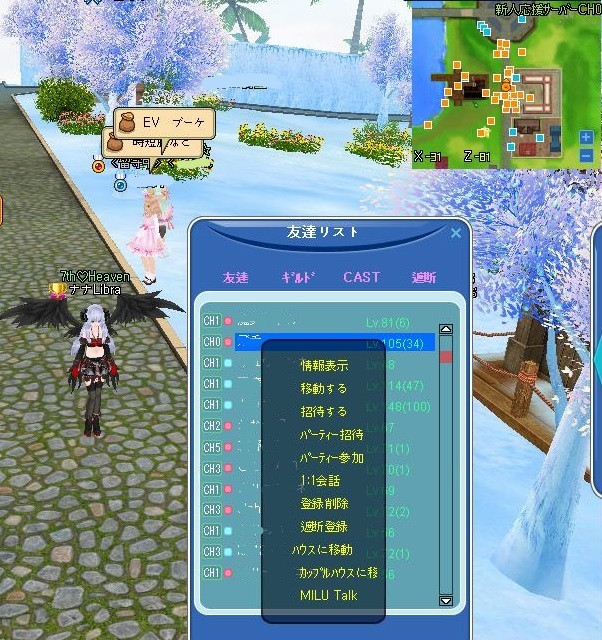 次に 0鯖にいるフレさんの名前を右クリックすると