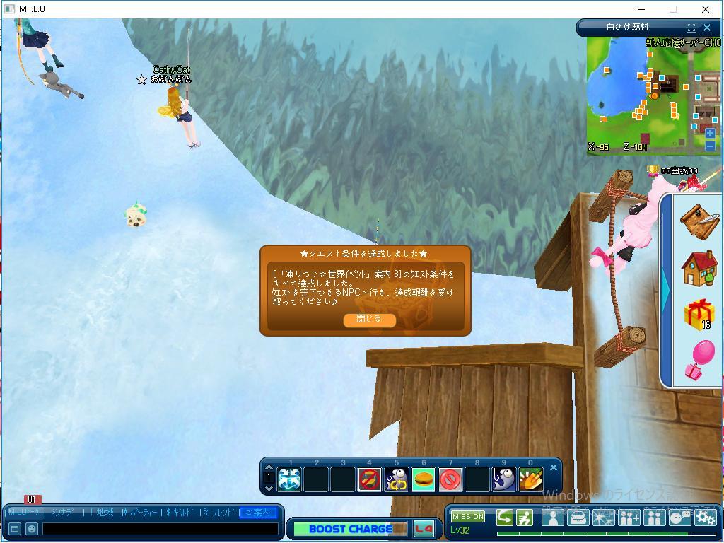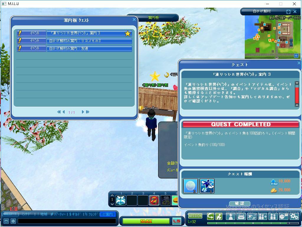 今日はひとつのクエストを完成しました。 案内板クエストの「凍りついた世界イベント」案内3ですね。