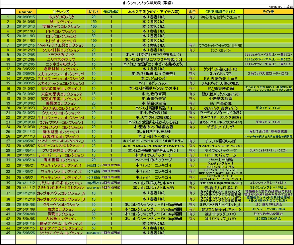 トップ > MILU日記 > 教えてもらったこと&調べたこと コレブ表