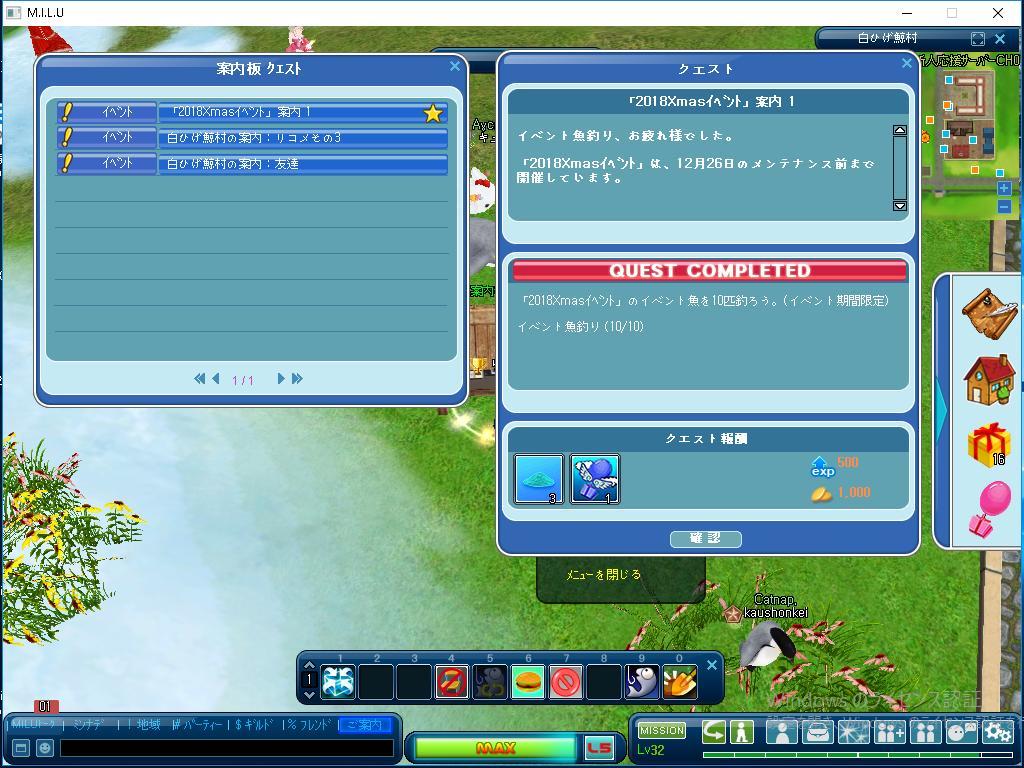 こちらのクエストでは、目標10匹のイベント魚釣り でした。 こちらのクエストは短時間で完成しました。