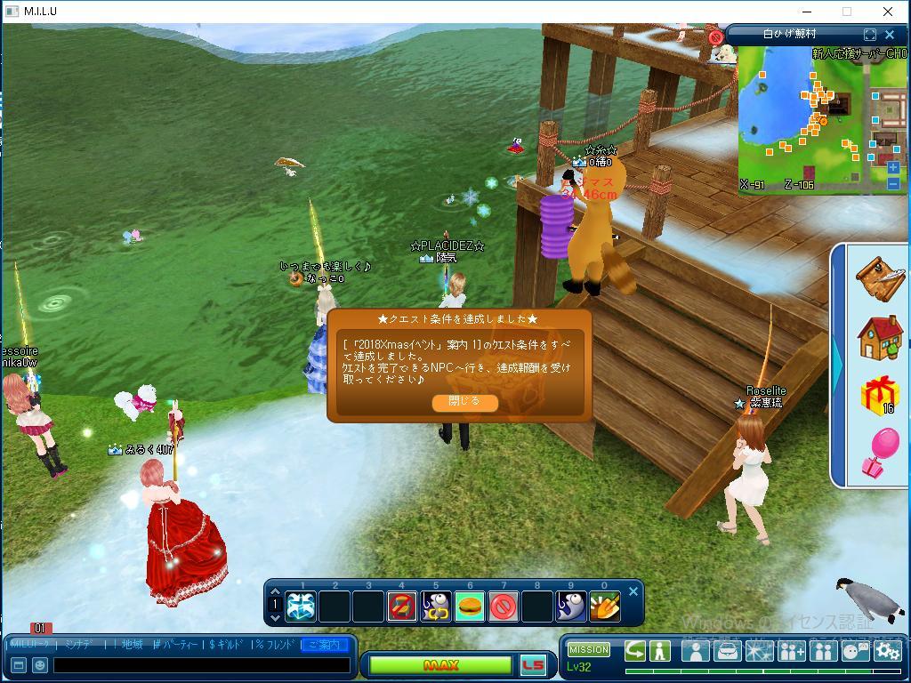 今日から新しいイベントが始まりました。 自分だけなのでしょうか? ロイクエストのルイの恋煩いは ユキさんのところのユキクエストで 突然消えてしまいました。 自分のミスなのか、それとも機械の せいなのでしょうか? あまりの出来事で動揺しましたが、 しょうがないので、案内板クエストの 「2018Xmasイベント」案内1を することに決めました。