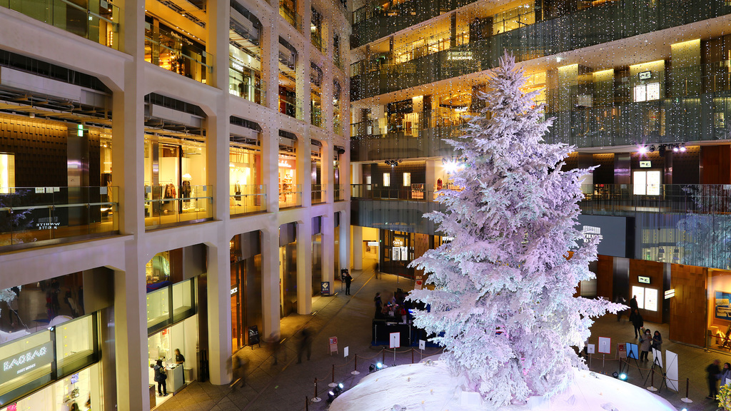 5階分の吹き抜けに2階分くらいの高さのツリー これまた都会はすげーなと思わせる装飾!