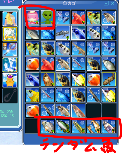 99回投げて約半分は材料で、パフォーマンスは微妙だなぁ。ランダム魚はまあまあヒットしたと思う。