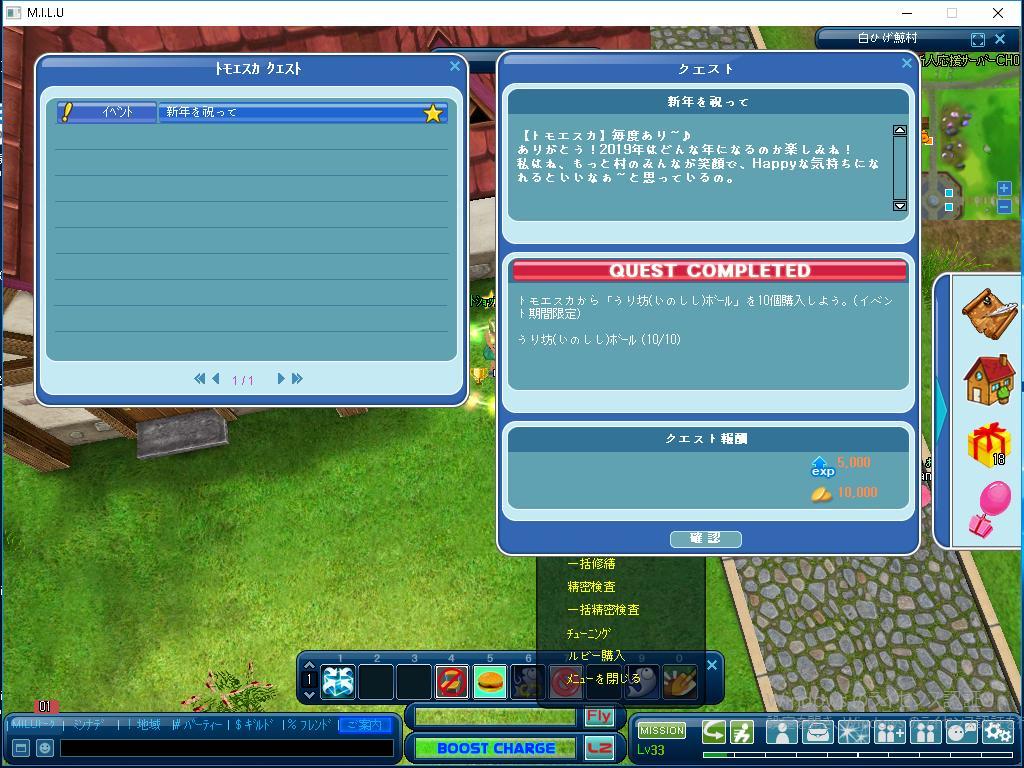 今日は、以上のクエストのところまで完了しました。