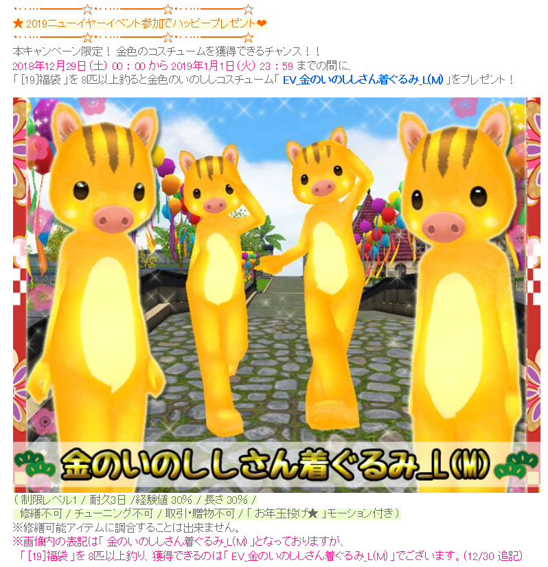 いのしし着ぐるみが貰えるらしい。