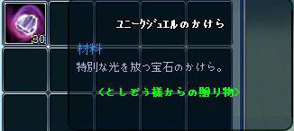 ユニークジュエルのかけら30個いただきました^^