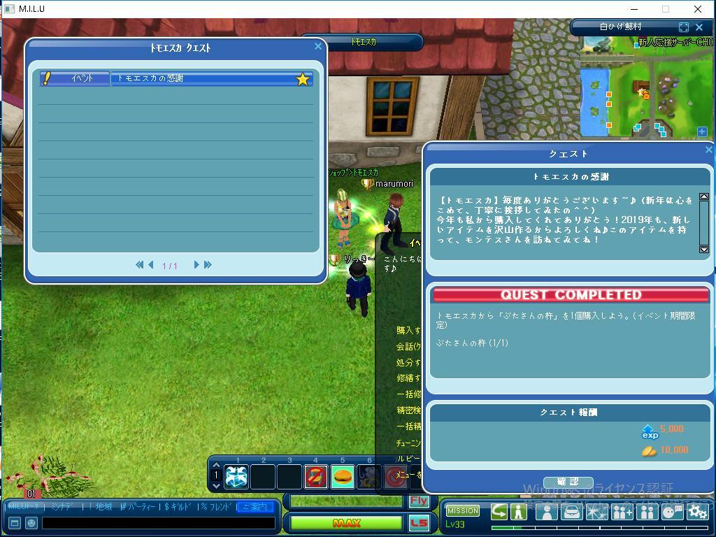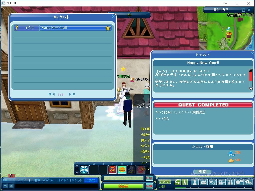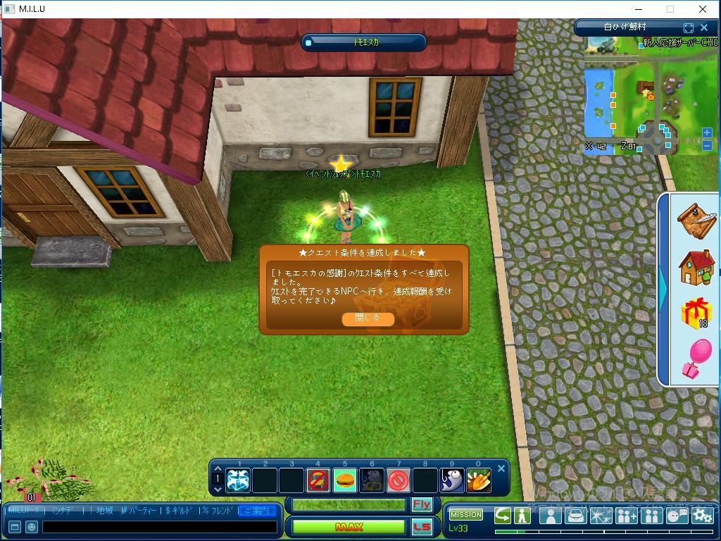 以上が、きょう完了したクエストです。 今日は久しぶりに、今年に入って初めて MILUをしました。 少しだけ、ブランクがあったせいか、 ゲームをする時、とまどうことが ありましたが、なんとかうまく 行けたことが良かったですね。 今日は本当に楽しかったです。 次回もまた楽しみます。 では、またです。