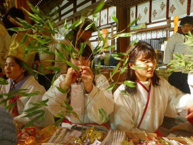 境内に入るのに小一時間、更に「古笹納所(回収箱)」の入替のためやら、お参り停滞、もらった「福笹」に飾る「吉兆」の購入と飾り付けを「福娘」(お気に入りを選んで並ぶ)に混雑するため、定期的に行う入場制限のためまるで人気テーマパークのアトラクション化してた(*´-д-)フゥ-3